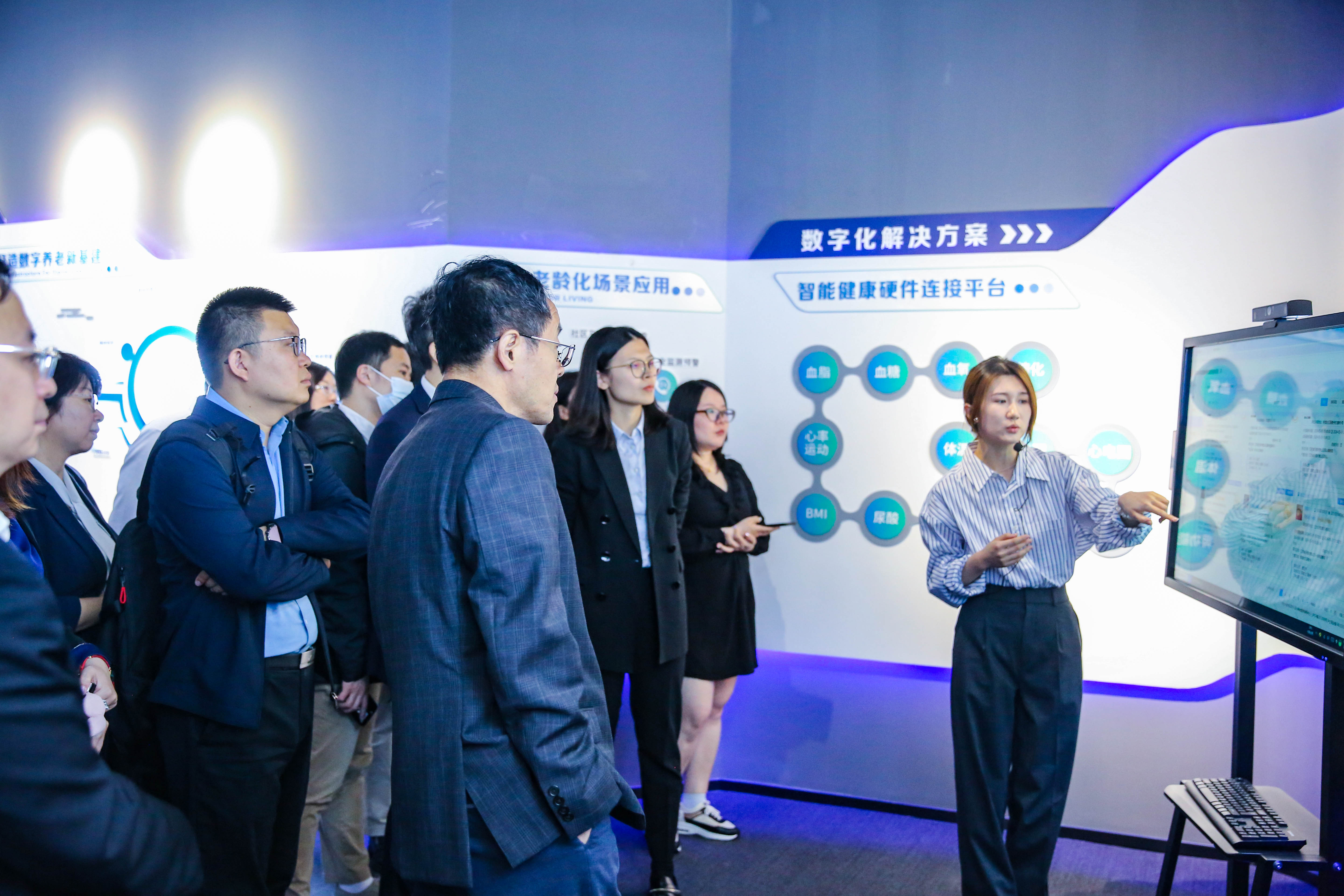 在参观过程中,代表们详细了解了天与养老先进的服务能力和技术实力,以及在智慧养老、健康管理、养老看护等方面的创新成果,并亲身体验了企业提供的相关智慧养老服务。参观现场气氛热烈,交流互动频繁,双方就养老服务的使用场景和养老金融的未来发展进行了深入探讨。