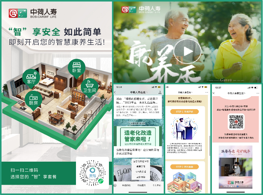 天与养老从专业养老思维入手,助力新华保险进行养老体验中心搭建,打造更贴近客户需求的体验中心,同时与保司共同承办客户活动,支持宣传物料设计制作、现场专业讲解、早筛体验等,带给客户更深入的活动体验,并通过综合快捷适老改造产品+黑科技产品套装,提供客户增值服务。