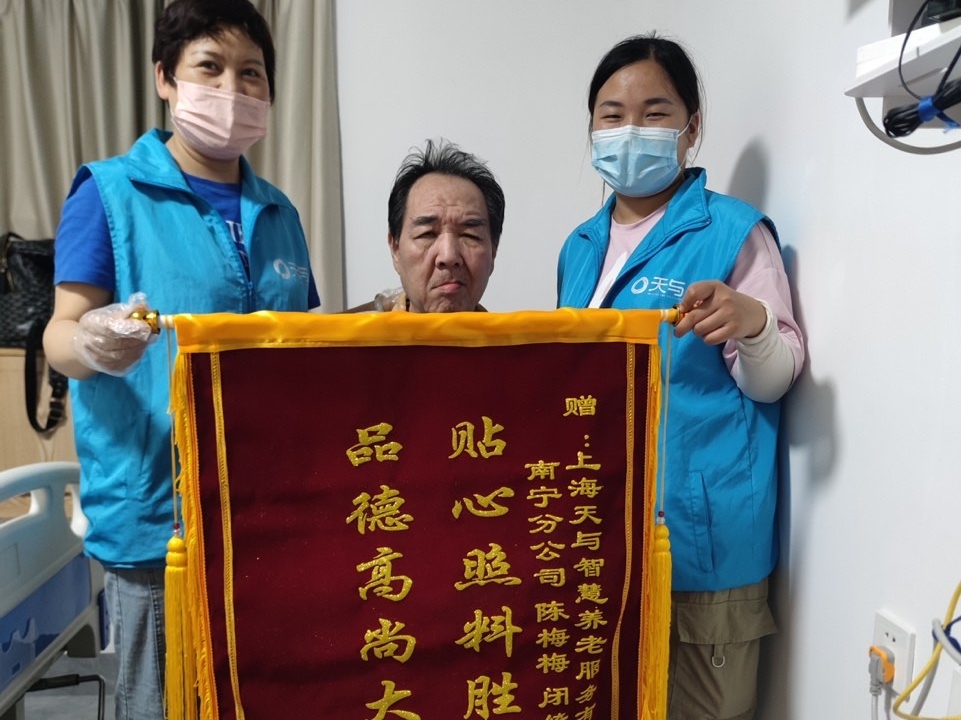 天与养老天津分公司长护险服务团队现有300余名护理员,现服务于2000余名城镇职工重度失能参保人员,服务内容包括助浴、理发、 头面部清洁与护理、口腔清洁与护理等27项生活照料以及鼻胃管护理、物理降温等15项医疗护理可供选择。长护险服务以来,获得参保人家属以及商保的一致好评。